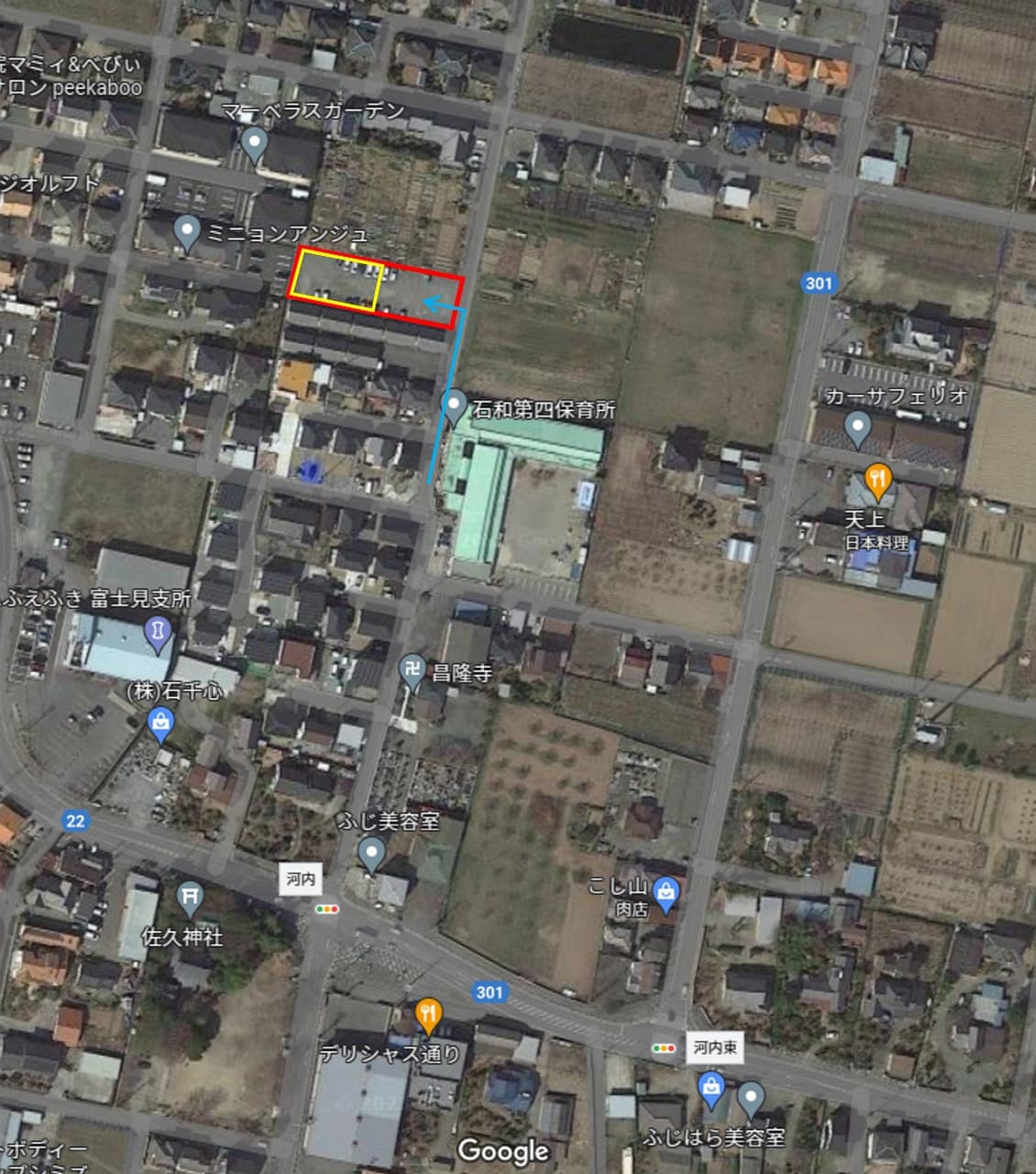 道路から入り、手前半分はアパート用の駐車場なので、半分から奥が職員用駐車場になります。