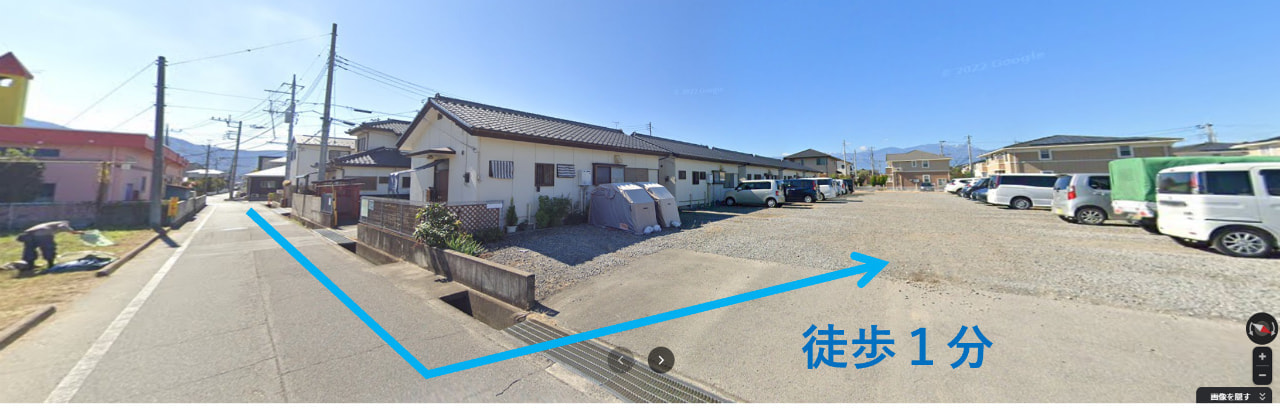 左手アパート側が軽自動車、右手側が普通車の駐車場になります。